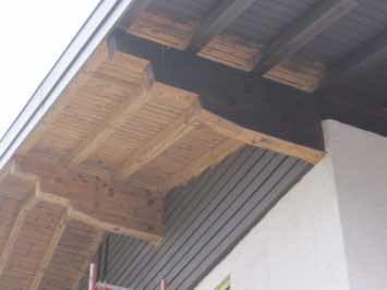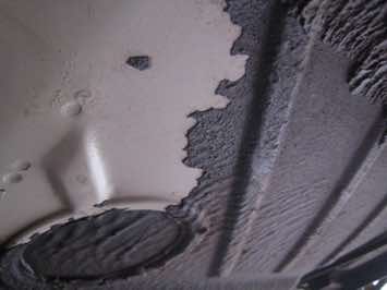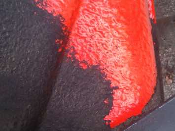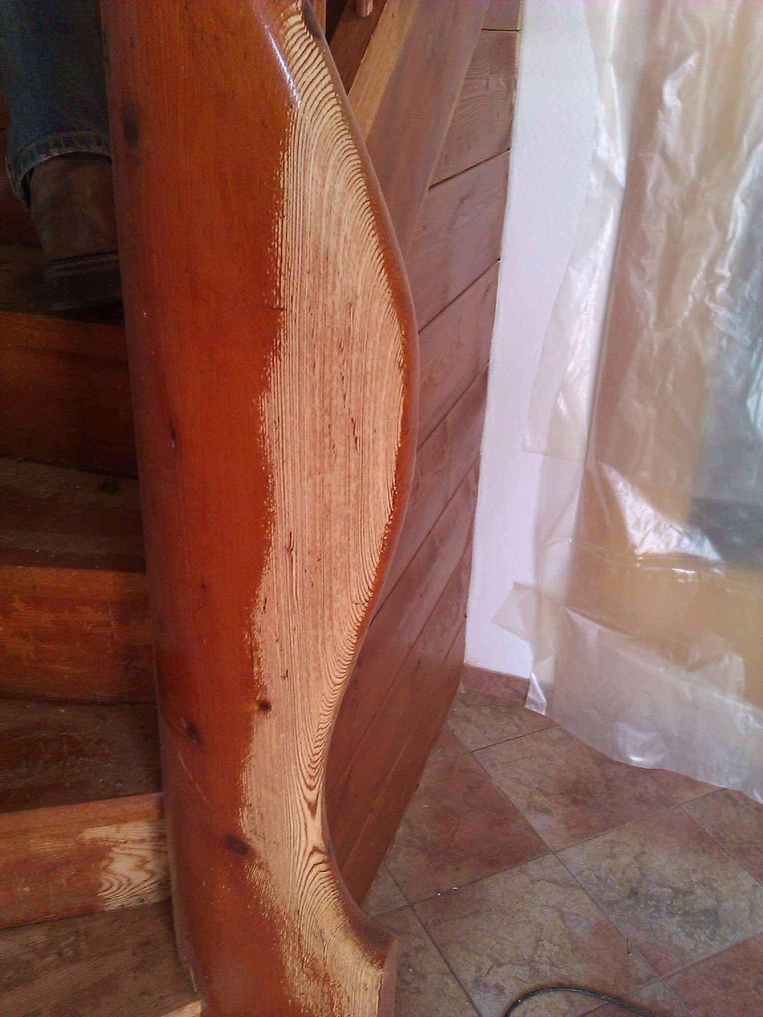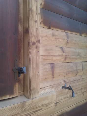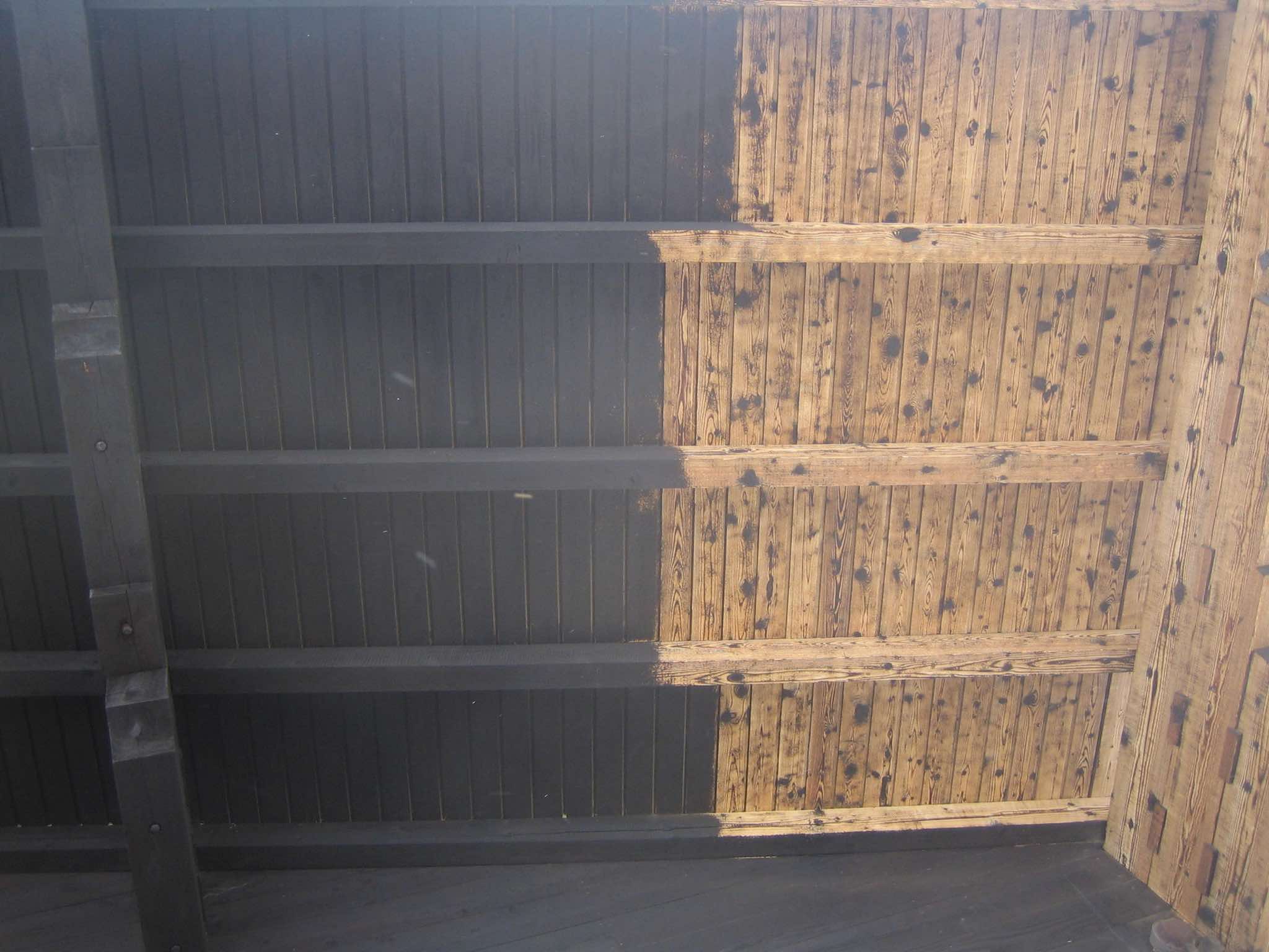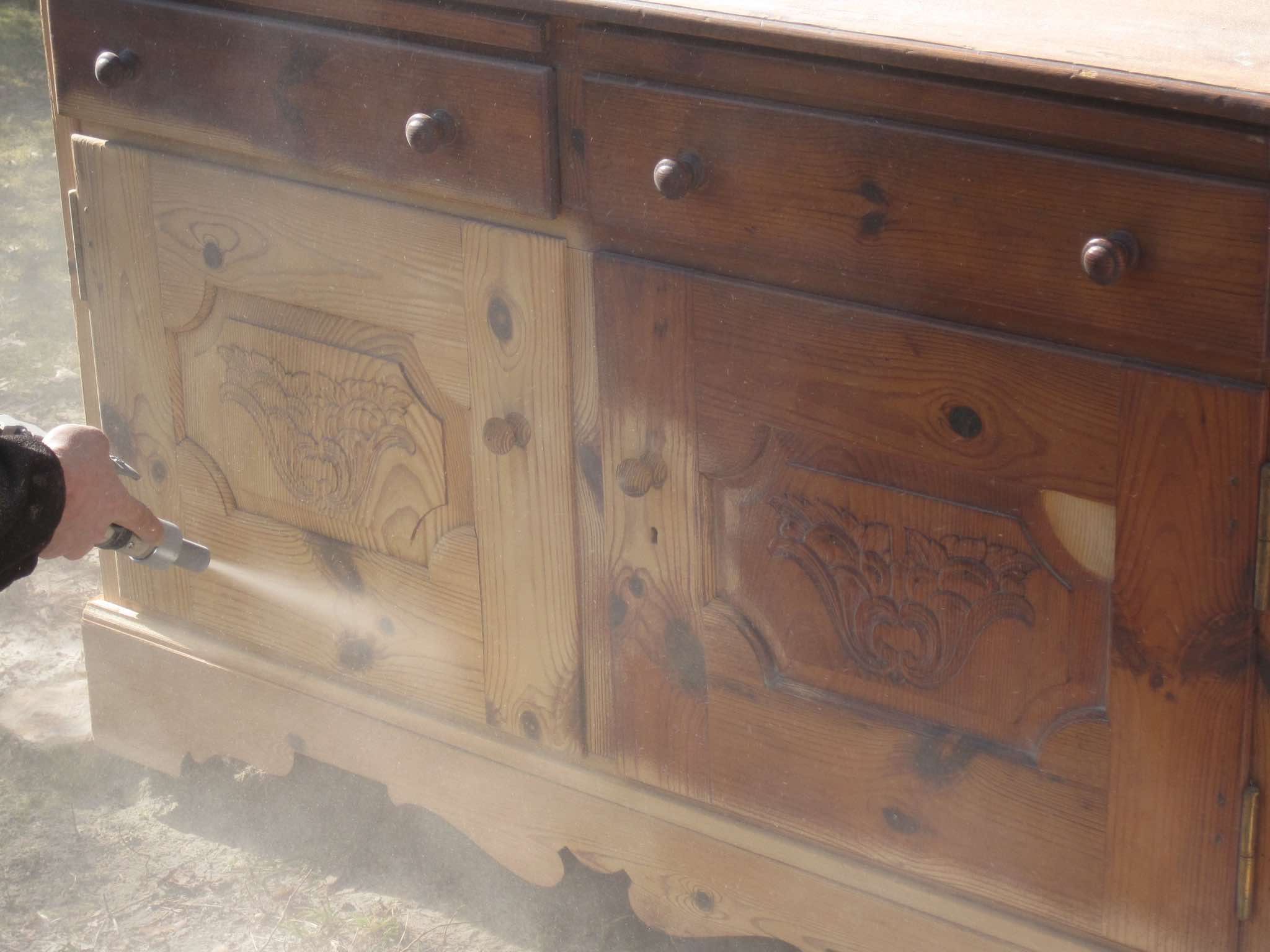 Trockeneis ist nicht abrasiv und beschädigt die Oberfläche nicht. Hier entsteht auf Holz eher ein rustikaleres Erscheinungsbild, da sich noch Reste der Altfarbe unter der Oberfläche befinden.